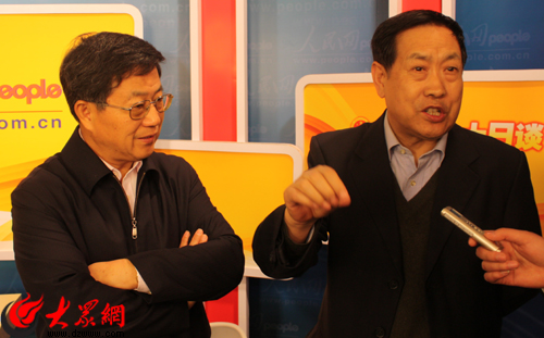 遲福林(左)、汪玉凱(中)接受本網(wǎng)記者采訪