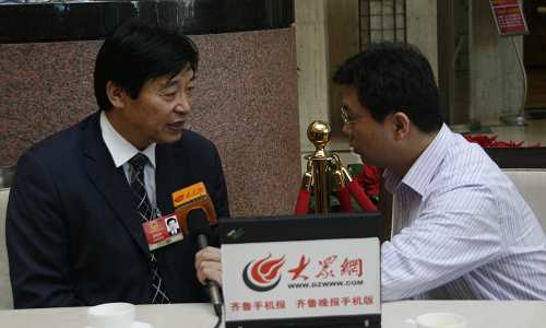 全國(guó)人大代表、山東華泰集團(tuán)董事長(zhǎng)李建華(左)接受本網(wǎng)記者專訪