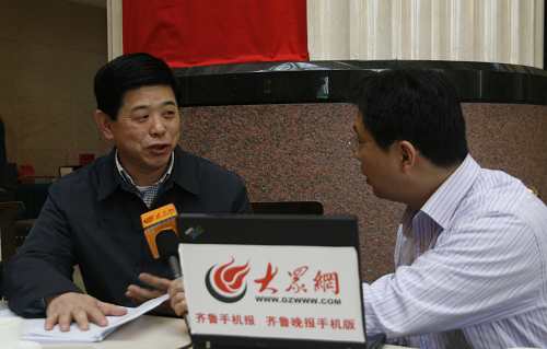 全國人大代表、山東省發(fā)展與改革委員會主任費云良(左)接受本網(wǎng)記者專訪