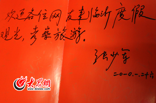 采訪結(jié)束時(shí),張少軍高興地為大眾網(wǎng)各地網(wǎng)友留言:“歡迎各位網(wǎng)友來臨沂度假觀光、考察旅游”。