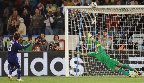 韓國隊開場6分鐘就由任意球高手樸周永擊中烏拉圭隊的門柱,最后1:2出局;日本隊更慘,第22分鐘松井大輔的射門被橫梁拒絕了,在點球決戰(zhàn)時駒野友一又一腳轟在了橫梁上,這雙重威力下,日本隊只能悲壯出局。