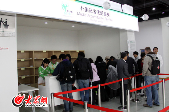 大眾網(wǎng)上海4月26日訊 (特派記者 吳哲 劉國棟)今天,離上海世博會正式開幕還有五天,也是媒體證件領(lǐng)取的第一天,雖然上海的天空又再次飄起了小雨,但位于浦東新區(qū)浦東南路的上海世博會注冊中心門前一早還是排起了長長的隊伍。離領(lǐng)證的時間還有半小時,來自境內(nèi)外的近300名注冊記者就趕到了現(xiàn)場,一位來自燕趙都市報的記者表示:“世博注冊的媒體很多,早領(lǐng)到證件心里踏實些!
