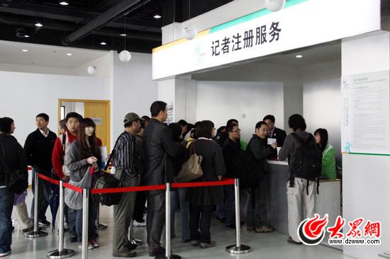 第一批記者領(lǐng)到了各自的注冊證件。