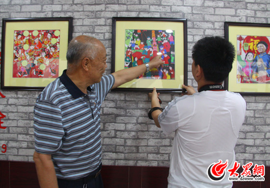 趙朝勛向記者介紹農(nóng)民畫畫作里蘊含的民族文化