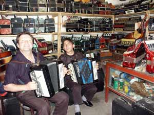 今年44歲的亞歷山大是伊寧市首屈一指的手風(fēng)琴修理師,同時(shí)也是伊寧最出色的手風(fēng)琴演奏家,無(wú)論春夏秋冬,每天從早到晚,地處阿合買(mǎi)提江街上的亞歷山大的樂(lè)器修理鋪里都飄蕩著動(dòng)聽(tīng)的樂(lè)曲聲,每次剛剛為顧客修理、調(diào)試好一架手風(fēng)琴,亞歷山大都會(huì)以嫻熟的指法即興拉上一段外國(guó)民歌,以檢驗(yàn)手風(fēng)琴的音階是否準(zhǔn)確,工作之余 ,亞歷山大也會(huì)隨意為朋友和顧客拉上一段他自己創(chuàng)作的曲目,修理鋪小小的空間頓時(shí)充滿(mǎn)著音樂(lè)之聲,鮮明的節(jié)奏,跳躍的音符,路過(guò)門(mén)前的行人常常被深深吸引駐足良久。
