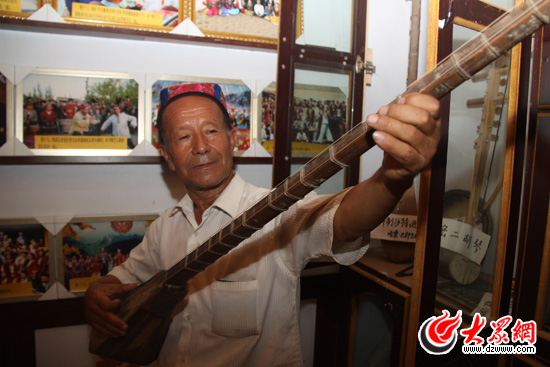 老人給記者介紹說,這些都是以前著名的木卡姆藝人使用過的樂器,有著一百多年的歷史了,前段時(shí)間剛有北京的一所博物館來人想花數(shù)萬元的高價(jià)把這些樂器收購走,老人連想都沒想就一口拒絕了!斑@些都是我的寶貝,給我多少錢都不賣!”