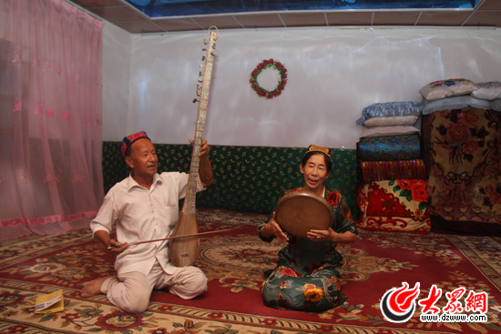興致所至,吐爾遜·司馬義老人邀請(qǐng)老伴一起演唱起木卡姆,可謂是琴瑟和諧了。