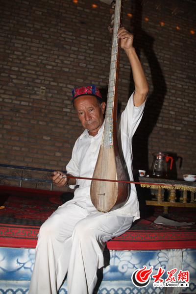 演奏吐魯番十二木卡姆中的吐爾遜·司馬義老人。