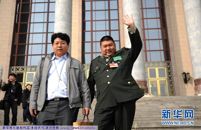 3月13日,全國政協(xié)第十一屆四次會議在京閉幕,政協(xié)委員揮手告別。圖為全國政協(xié)委員毛新宇走出人民大會堂。新華網 翟子赫 攝