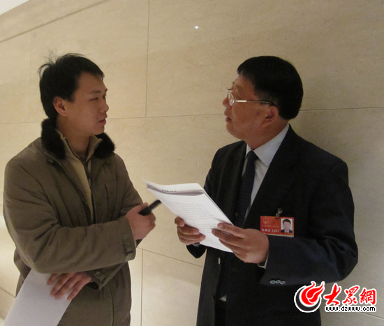 全國人大代表、山東登海種業(yè)股份有限公司董事長李登海在山東團(tuán)分組審議間隙接受大眾網(wǎng)記者采訪。 特派記者 李冉 攝