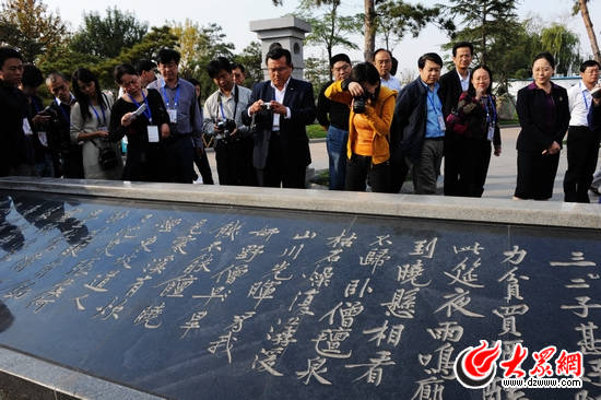 大眾網(wǎng)臨沂10月19日訊(記者 馬鑫)蘸著從沂河打來的水,在翠柳和清風的包裹下,臨摹石刻上的千年名作……這就是書法名城臨沂所給民眾帶來的愜意生活。下午3點,“文化強省看山東——第七屆中國網(wǎng)絡(luò)媒體山東行”采訪團一行來到臨沂書法廣場,感受了一番臨沂人享受文化惠民的獨特生活。