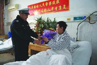 “他們開車撞了歹徒的車后,歹徒才被抓的。”站在一旁的一位民警說。坐在南側(cè)病床上的劉峰連忙說,面對窮兇極惡的歹徒,這是他們的職責(zé)。接著他向記者講述了4日中午抓捕歹徒的驚險一幕:當(dāng)時他們正在青年南路準(zhǔn)備堵截歹徒的車,接到最新信息后,他們迅速開車沿著康復(fù)路、龍?zhí)堵废蛭幕沸旭,尋找歹徒駕駛的車。在文化路口,他們曾經(jīng)和歹徒開的面包車背道相駛,但為了穩(wěn)妥地抓住歹徒,他們還是故意將歹徒放進了包圍圈。于是,他們立即跟蹤歹徒,到了文化路和龍?zhí)堵方粫,這時歹徒發(fā)現(xiàn)被包圍了,妄圖沿著文化路向東逃竄。