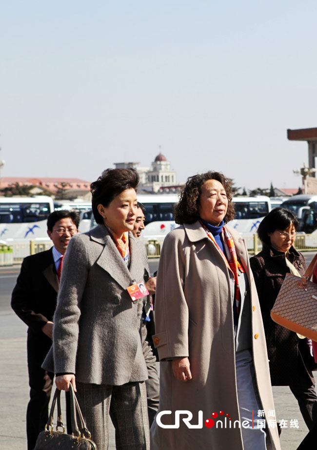 中國國際廣播電臺(tái)知名俄語專家、首席播音員范冰冰(右)和楊瀾走向大會(huì)堂 苗慧 攝