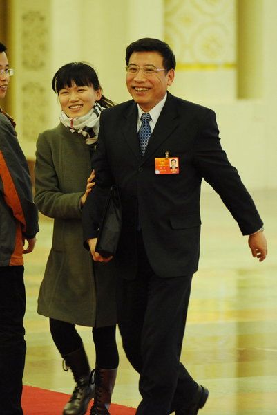 2012年03月11日,北京,工信部部長苗圩被女記者“圍堵”拉去接受采訪。