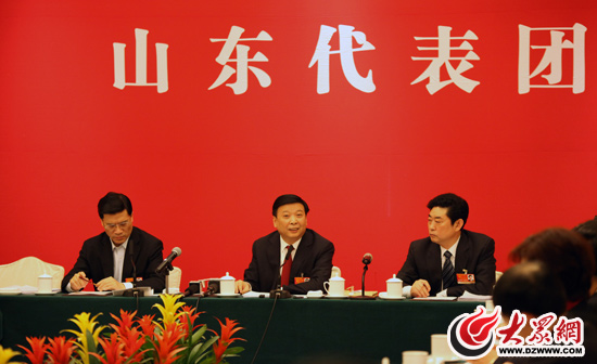 全國(guó)人大代表、山東省委副書記、省長(zhǎng)姜大明現(xiàn)場(chǎng)回答記者的提問。