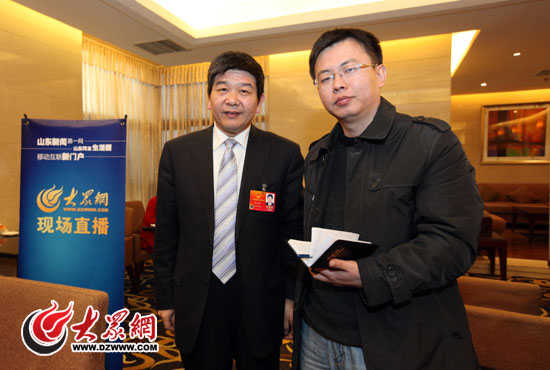 全國(guó)人大代表、省教育廳副廳長(zhǎng)張志勇(左)與本網(wǎng)記者合影。