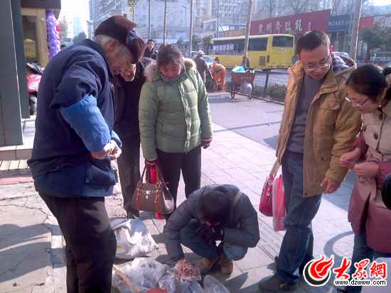 大眾網(wǎng)濟南12月5日訊記者 韋輝)“81歲老大爺楊洪義,凌晨四點多出發(fā)走四個多小時的山路進濟南市區(qū)賣自制山貨,濟南的朋友如果看見他,多買點大爺?shù)纳截,讓大爺溫暖過冬!12月3日,一條老人自力更生賣山貨的帖子在微博、人人等社交網(wǎng)站傳開,隨后,濟南很多網(wǎng)友都在尋找這位“山貨大爺”。5日上午,記者在文化東路找到了楊洪義老人,看到不少網(wǎng)友自發(fā)趕來買老人的山貨,到中午12:30,老人的山貨基本銷售一空。