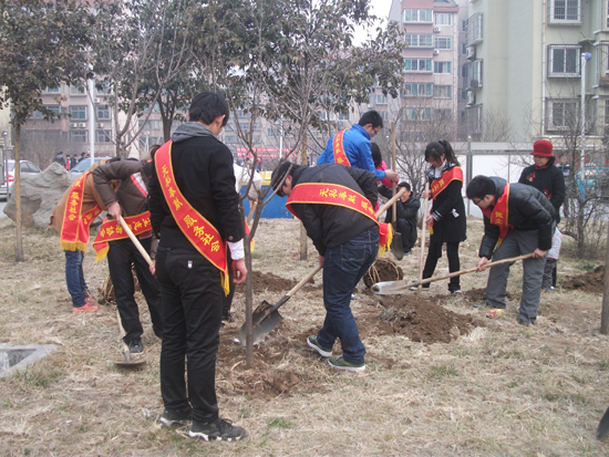 大眾網(wǎng)淄博3月11日訊(通訊員 解偉) 正值第34個(gè)植樹(shù)節(jié)到來(lái)之際,為響應(yīng)黨中央“學(xué)習(xí)雷鋒精神” 的號(hào)召,體現(xiàn)當(dāng)代大學(xué)生的志愿服務(wù)精神,3月10日上午,建筑工程學(xué)院微塵志愿者協(xié)會(huì)與中國(guó)農(nóng)業(yè)銀行淄博分行以及鑫馬物業(yè)管理有限公司合作進(jìn)行的植樹(shù)活動(dòng)在張店區(qū)金鑫園小區(qū)順利開(kāi)展。山東理工大學(xué)團(tuán)委副書(shū)記劉興清、建筑工程學(xué)院黨總支副書(shū)記田兆富、團(tuán)總支書(shū)記張樹(shù)霞、輔導(dǎo)員張燕麗,中國(guó)農(nóng)業(yè)銀行淄博分行主任陳鵬、經(jīng)理初敏,淄博鑫馬房地產(chǎn)開(kāi)發(fā)有限公司總經(jīng)理張鵬、副總經(jīng)理劉維明、鑫馬物業(yè)管理有限公司總經(jīng)理李向東,馬尚鎮(zhèn)黨委委員、宣傳部部長(zhǎng)谷瑤,及50余名微塵志愿者參加了此次活動(dòng)。