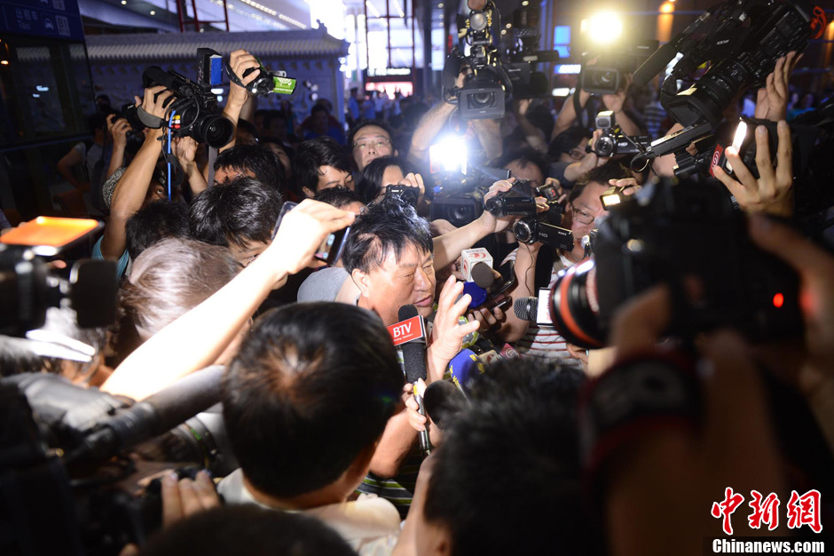 7月20日晚,大批媒體記者在現(xiàn)場(chǎng)追訪一名目擊者。當(dāng)日18時(shí)24分,一名殘疾人(中國(guó)籍)在北京首都國(guó)際機(jī)場(chǎng)3號(hào)航站樓到達(dá)大廳B出口外,引爆自制爆炸裝置,造成本人受傷,未造成周圍人員傷亡。中新社發(fā)李學(xué)仕攝