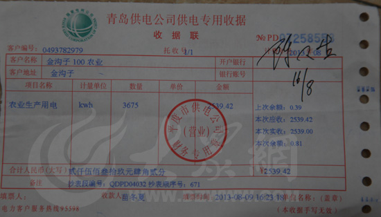 2013年8月,包括陳寶成在內(nèi)的4個拒拆戶所用的水泵產(chǎn)生的電費,達2500多元。