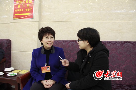 人大代表、濰坊市人大常委會副主任毛秀鳳接受大眾網(wǎng)記者采訪。