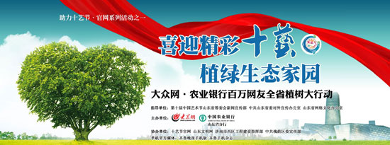 在“十藝節(jié)”山東籌委會新聞宣傳部、山東省委外宣辦、山東省網(wǎng)絡(luò)辦指導(dǎo)下,3月10日,大眾網(wǎng)將聯(lián)合中國農(nóng)業(yè)銀行山東省分行共同主辦“喜迎精彩十藝 植綠生態(tài)家園”百萬網(wǎng)友全省植樹大行動。據(jù)了解,濟(jì)南主會場活動將在“十藝節(jié)”大劇院南率先啟動,目前已經(jīng)有3000多名網(wǎng)友報(bào)名參加。