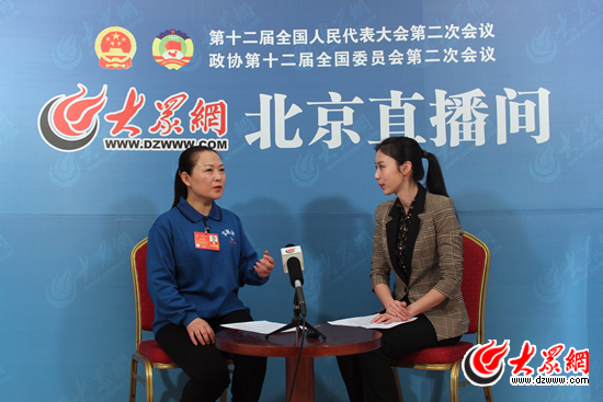 全國人大代表、山東德州寶麗潔物業(yè)管理有限公司總經(jīng)理焦文玉做客大眾網(wǎng)北京直播間接受訪談。特派記者 趙洪棟 攝