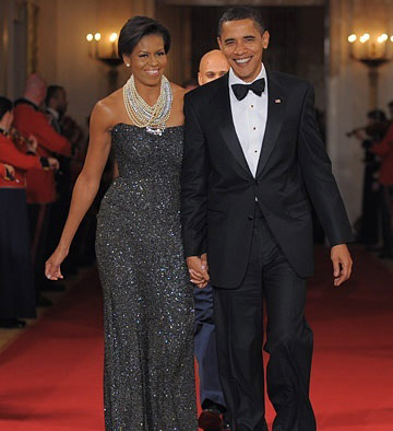 當(dāng)米歇爾-奧巴馬穿著Jason Wu的時(shí)裝出現(xiàn)在奧巴馬就職晚宴上的那一刻,向全世界展示了她的時(shí)尚立場(chǎng)——即使是第一夫人,也需要符合潮流的衣裝。白色及地單肩晚禮服,極顯優(yōu)雅與穩(wěn)重,特意提高的腰線,緊身抹胸式設(shè)計(jì)更能凸顯胸部線條,腰線下順暢的大裙擺將略發(fā)胖的臀部巧妙地隱藏起來。