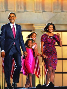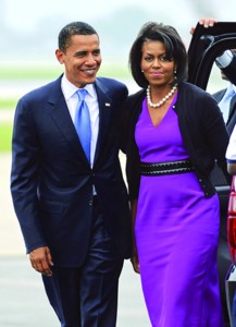美國人一向是崇拜個人偶像的,無論是好萊塢還是白宮,這個規(guī)律從來不曾改變過,特別是當風(fēng)流倜儻的總統(tǒng)配上氣質(zhì)高貴的第一夫人,更能讓選民瘋狂。早在肯尼迪帶著夫人杰奎琳出來選總統(tǒng)時,就已經(jīng)在美國國內(nèi)掀起追星般的狂熱。杰奎琳引領(lǐng)的時尚風(fēng)潮也經(jīng)久不衰,法國第一夫人卡拉·布呂尼首次隨總統(tǒng)薩科齊出訪英國的時候,就以一襲“杰奎琳式”的洋裝驚艷亮相希思羅機場。如今奧巴馬處處被人拿來與肯尼迪比較,而現(xiàn)年44歲、身高1.8米、儀態(tài)端莊的米歇爾,就有人稱贊她將杰奎林·肯尼迪的風(fēng)度和勞拉·布什的魅力集于一身。