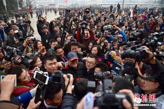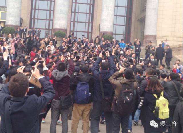 今天下午,距離全國政協(xié)十二屆四次會(huì)議開幕還有一個(gè)小時(shí)的時(shí)候,人民大會(huì)堂東側(cè)廣場上早已聚集了包括樣哥(爆三樣微信號:sdbaosanyang)在內(nèi)的3000多位記者,一會(huì)兒,將有2000多位委員從這些手持“長槍短炮”的記者中間穿行而過。他們中有官員、軍人、大佬、明星、專家……其中,誰將成為當(dāng)天的焦點(diǎn)人物,或許委員們與樣哥一樣,在下車的那一刻,心中依然忐忑。“李彥宏!”14點(diǎn)25分,當(dāng)李帥哥出現(xiàn)的時(shí)候,現(xiàn)場的沉寂第一次被突然打破,當(dāng)時(shí)樣哥還尋聲四處找人,只見前方一團(tuán)人群迅速向樣哥奔來,要說走路的速度,李彥宏還真不比劉翔差,沒拍到正臉,樣哥只能含恨目送人群遠(yuǎn)去。李彥宏之后,姚明、鞏漢林、張國立、姜昆、俞敏洪等大多都遭遇了李彥宏相似的圍堵和追問。不一會(huì)兒劉翔也來了,但他竟神奇地躲過了記者們的圍堵,悄悄地走進(jìn)了會(huì)場。按說3000多記者盯著,不應(yīng)該又漏掉他呀?墒,這次劉翔就像去年喊了一句“姚明來了!”一樣幸運(yùn),又有人替他出來解圍了。此人身穿黑色外套,頭戴深藍(lán)色帽子,一下車就被“逮”著了。