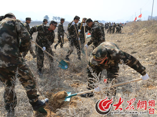 3月12日,“大眾網·農業(yè)銀行2016全省百萬網友植樹大行動”在淄博市周村區(qū)南郊鎮(zhèn)皇住村園林綠化基地啟動。(孫劍 攝) 大眾網淄博3月...