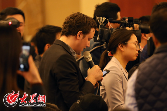 大眾網(wǎng)記者發(fā)現(xiàn),在現(xiàn)場提問環(huán)節(jié),從“貿(mào)易戰(zhàn)”到“地方債”,無論記者們提出的問題多么尖銳,山東團的代表們都一一進行了回答。每當有提問機會出現(xiàn)時,許多記者為了讓主持人看到自己,一直站著高舉雙手。