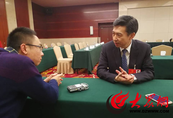 全國人大代表、濰坊市市長李寬端接受大眾網(wǎng)記者的采訪。