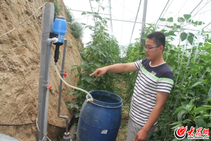 耿付建向大眾網(wǎng)記者介紹水肥一體化種植技術(shù)