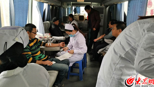 郭家溝村民在獻(xiàn)血車上獻(xiàn)血