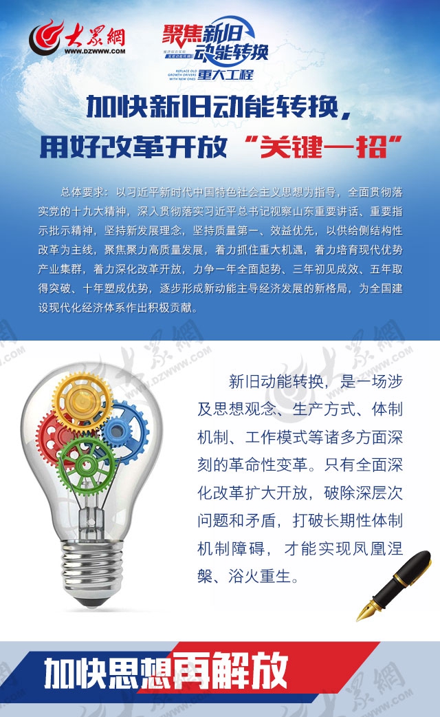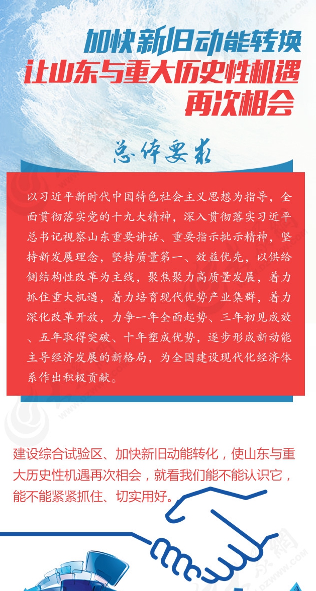 以習(xí)近平新時(shí)代中國(guó)特色社會(huì)主義思想為指導(dǎo),全面貫徹落實(shí)黨的十九大精神,深入貫徹落實(shí)習(xí)近平總書記視察山東重要講話、重要指示批示精神,堅(jiān)持新發(fā)展理念,堅(jiān)持質(zhì)量第一、效益優(yōu)先,以供給側(cè)結(jié)構(gòu)性改革為主線,聚焦聚力高質(zhì)量發(fā)展,著力抓住重大機(jī)遇,著力深化改革開(kāi)放,著力培育現(xiàn)代優(yōu)勢(shì)產(chǎn)業(yè)集群,力爭(zhēng)一年全面起勢(shì)、三年初見(jiàn)成效、五年取得突破、十年塑成優(yōu)勢(shì),逐步形成新動(dòng)能主導(dǎo)經(jīng)濟(jì)發(fā)展的新格局,為全國(guó)建設(shè)現(xiàn)代化經(jīng)濟(jì)體系作出有益探索和積極貢獻(xiàn)。