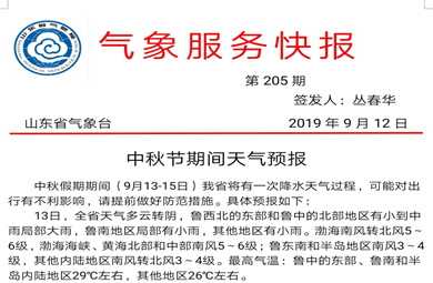 具體預(yù)報(bào)如下:13日,全省天氣多云轉(zhuǎn)陰,魯西北的東部和魯中的北部地區(qū)有小到中雨...[ 詳情 ]