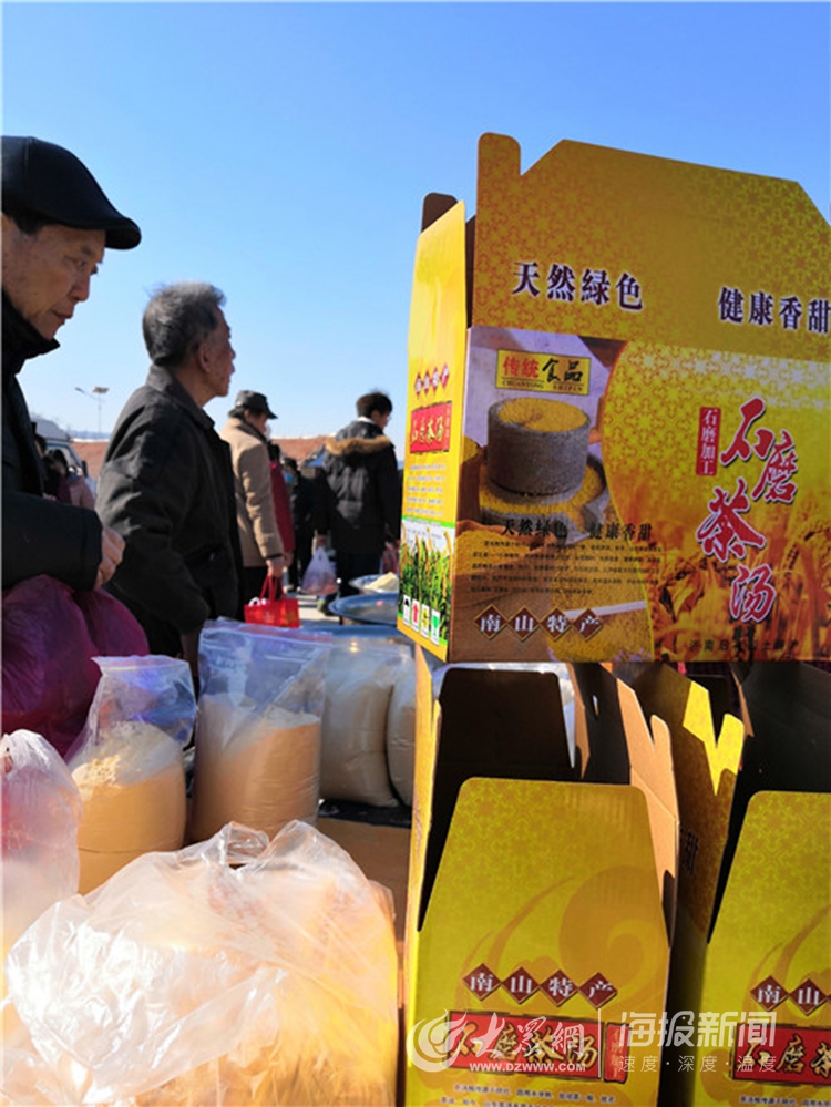 除了年宵花,南部山區(qū)特有的黃面窩窩、炒茶湯、土雞蛋、地瓜干等土特產(chǎn)也很受歡迎,很多市民買這些特產(chǎn)打算當(dāng)節(jié)禮送親朋好友,為此很多攤販還為自家特產(chǎn)訂做了禮盒。