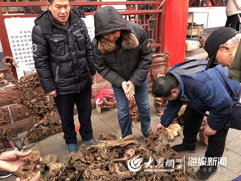 一個(gè)根雕攤位前,許多市民在挑選