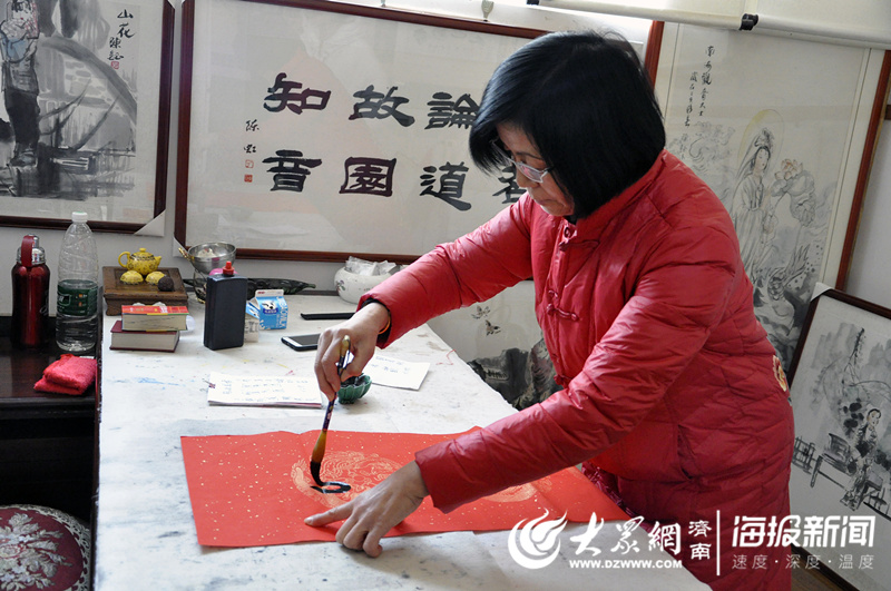 陳虹正在創(chuàng)作一幅春聯(lián)