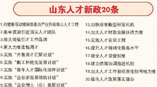 去年出臺的《山東省高層次人才服務綠色通道規(guī)定》明確了29項重點服務事項,新設立202個高層次人才服務窗口,為3800多名高層次人才發(fā)放了“山東惠才卡”。開通“12345”人才服務專線,實時解決人才各類訴求……山東把人才奉為“座上賓”,積極主動靠上服務,堅持...[詳細]