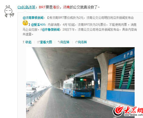 濟(jì)南公交稱BRT2元早有批復(fù),下午將開新聞發(fā)布會