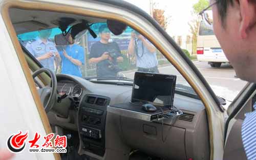 在考試場地,記者發(fā)現(xiàn)這里的考試車與普通的考試車相比有很大不同,這輛車不僅內(nèi)部裝上了攝像機,而且車的頂部也裝上一個攝像機。