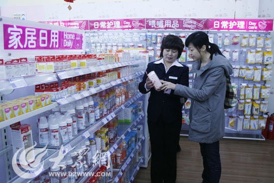 濟(jì)南嬰貝兒健康管理顧問有限公司副總經(jīng)理馬萍給記者講解塑料奶瓶辨別知識(shí)