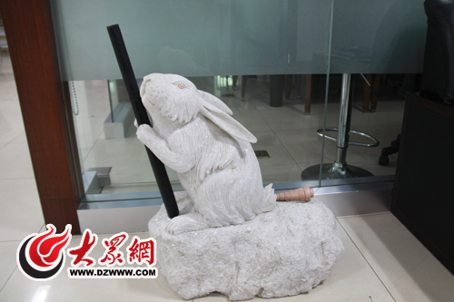 山東白兔商標(biāo)代理公司內(nèi)展示的“白兔兒”商標(biāo)工藝品。