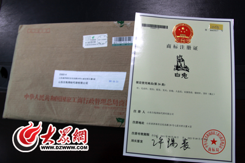 11月1日,山東白兔商標(biāo)代理公司收到了國(guó)家工商總局寄來(lái)的商標(biāo)注冊(cè)證。