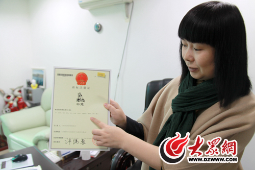 李芳對(duì)記者介紹她所注冊(cè)的“白兔”商標(biāo)。
