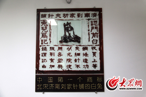 大眾網(wǎng)濟(jì)南11月2日訊(記者 馬鑫)一塊北宋年間的方形銅板,上方標(biāo)有“濟(jì)南劉家功夫針?shù)仭钡淖痔?hào),正中刻有一白兔搗藥的圖案,并注明“認(rèn)門(mén)前白兔兒為記”。據(jù)考證這就是中國(guó)歷史上最早的廣告,而其上的“白兔搗藥”的圖案則被認(rèn)為是中國(guó)最早的商標(biāo)。昨日,山東白兔商標(biāo)代理有限公司正式收到了由國(guó)家工商總局寄來(lái)的商標(biāo)注冊(cè)證,自此這個(gè)中國(guó)最早的商標(biāo)“白兔”在千年之后正式回歸濟(jì)南。