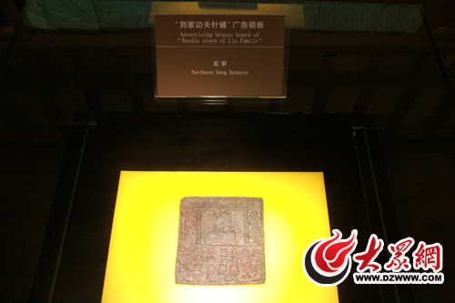 “我們現(xiàn)在展覽的是銅板的復(fù)制品,文物的原件現(xiàn)在藏于北京的中國歷史博物館!睗(jì)南市博物館李館長對記者說,現(xiàn)在在濟(jì)南市博物館的二樓,的確有一個(gè)北宋“濟(jì)南劉家功夫針鋪”的廣告銅印版的展位,這個(gè)廣告銅板主要是用作展現(xiàn)濟(jì)南古代商業(yè)文化的一個(gè)歷史物證對外進(jìn)行展覽。