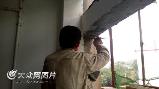 大眾網(wǎng)記者在現(xiàn)場(chǎng)看到,目前該樓第三、第四單元正在維修當(dāng)中,水泥窗欞基本拆除完畢,幾位工人正在用水泥加固以往破損的窗臺(tái)。一名工人告訴大眾網(wǎng)記者,收尾工作今天基本能夠完成,“過(guò)幾天就能裝防盜網(wǎng)了”。